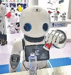 大眼睛、萌萌哒,智能机器人优友因其可爱的外形而被观众称为“萌主”,本届机器人大会上,优友表演了伸出5个手指头抓起口香糖盒与矿泉水瓶的绝活儿。据现场工作人员介绍,优友除了具备类人型服务机器人自然语音交互、微秒人脸识别、自主避障行走、仿生动作模拟、智能控制中枢五大基本功能外,还能够识别表情和动作,具备数百种情感表达以及22个仿生类人自由度,目前已应用到电力、交通、酒店、医疗、政务、银行等十大行业,能够在上百种应用场景中提供服务。