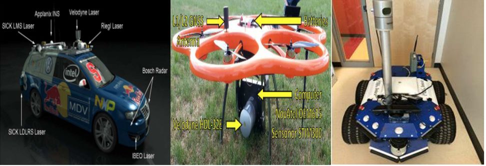 通过调研及查找相关文献,目前激光雷达和全景相机组成系统主要应用于SLAM、地图构建、定位、导航、路径规划等研究领域。该系统可以实现无人驾驶三维环境识别重建、机器人星空官网室内外高精度地图构建和跟踪导航,能够将外界环境颜色信息和深度信息集于一体,可大大缩小识别误差和信息错误丢失率,如下分别为装有该系统的无人车载实物图及其实现的地图构建效果图。