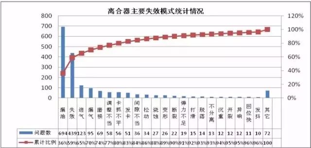 某汽车制造厂某型离合器主要失效模式统计
